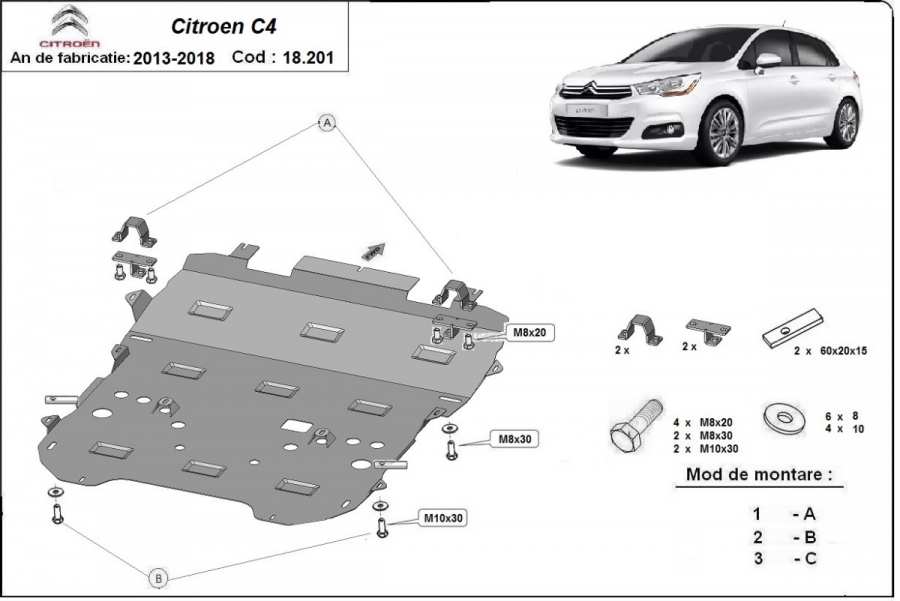 | Protejează: motor, cutie de viteză, radiator, bara față |